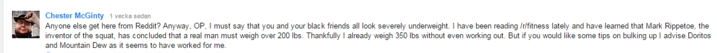 Anyone else get here from Reddit? Anyway, OP, I must say that you and your black friends all look severely underweight. I have been reading Witness lately and have learned that Mark Rippetoe, the