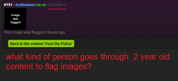 Like the post a couple of days ago said, we need mods for the mods, or a system where when an image is flagged by one mod it goes to a holding page where other mods will see it and then flag it as **** or pass it as fine, the current system is messed up and will continue to be if random people over the internet are given the ability to do this stuff.