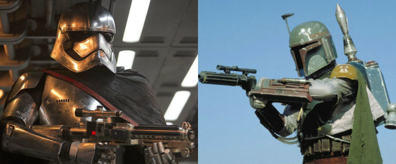It would be one hell of a stretch, but the similarities between Phasma and Boba, strikes me. What if Phasma is Boba's daughter or some other relation. They both have distinct costumes and you never see their face. All she needs is a jet pack.