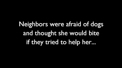 You can see the dog snap at the people in the third frame because she's scared. Any animal does that when frightened. Judging from her emaciated body she must have been like that for at least three months with minimal food.