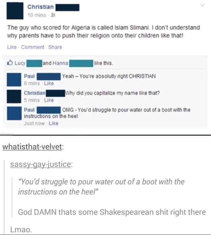 so? It's not like Christian is accusing this algerian kebab of anything, only his parents. and the fact he is too dumb to realise that he also have religion inspired name is different matter. Paul on the other hand sounds like an asshole who totally misintepreted what christian had on his mind in the first post. If Christian had at least 4 put into inteligence he would have said, "yeah, I know it sucks, because I have religion based name as well, what's your problem Paul?".