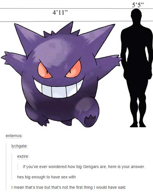 Also Furret are 5'11". Just imagine being a young teen walking through tall grass when all of a sudden one of those appear and tower over you. And Dunsparce are supposed to be only a foot shorter than them, which is ******** .