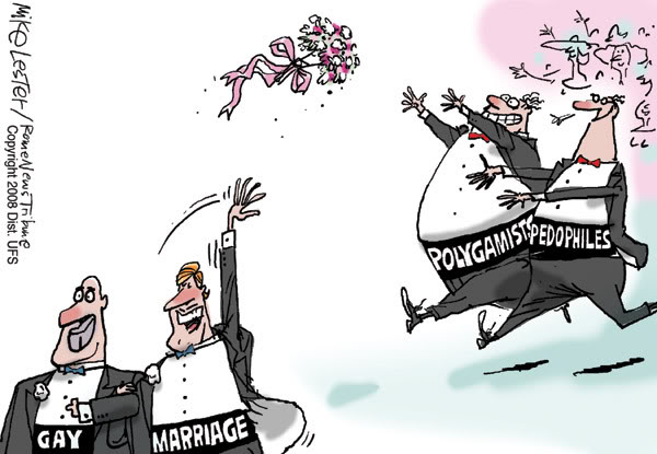 "As it happens that next thing will probably be polygamy, and doubtfully pedophilia."