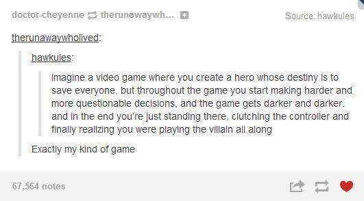 imagine a game where you create a hero whose destiny is to