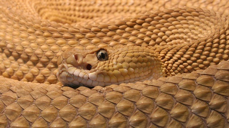 Vipers are venomous snakes whose long, hinged, hollow fangs inject deadly toxins. Vipers are generally ambush predators and have mouths that can open to almost 180 degrees during a strike. Strikes are primarily aimed at stunning prey though may also be used in self-defence. The 30 genera in the viper family contain over 200 species including rattlesnakes, lanceheads and puff adders. They can be found in unexpected places, living in trees, in water and in the desert, but most live on the ground. Surprisingly, Australia is one of the two continents where vipers are not to be found. The other is - unsurprisingly - Antarctica.