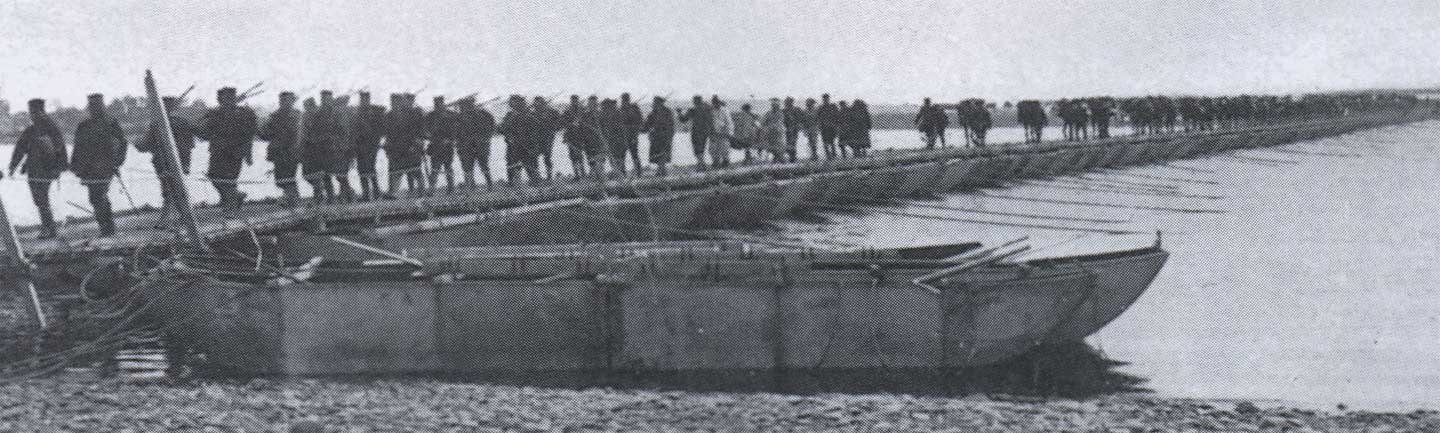 Japanese troops crossing Yalu River