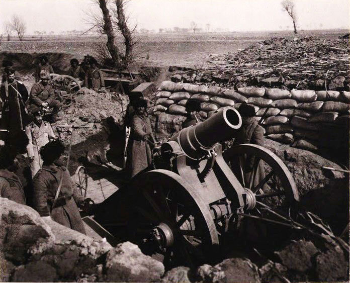 8-inches mortar battery in 900 meters before the enemy positions at Sandepu, the battle was in total indecisive with no clear winners.