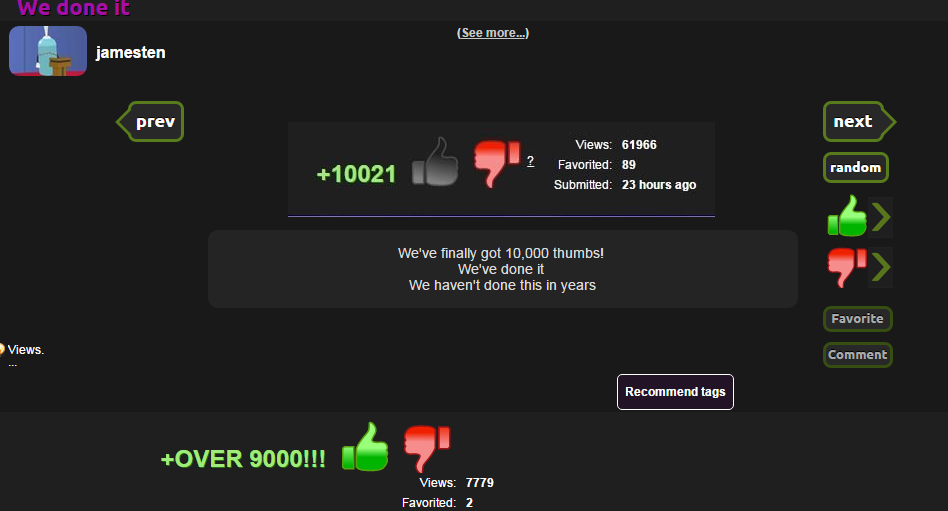 I think I remember the last time someone got close to that amount of thumbs was when they literally posted nothing and said that the gif takes a long time to load in the description.