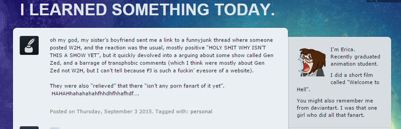 Erica here. For the record I hate tumblr's layout too. Every update is like they had their programmers smack the keyboard with a dildo and call it a day. FJ's still an eyesore tho, I stand by that!
