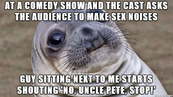 No one understood why i was laughing so hard, except my friend. Never went back to church again.