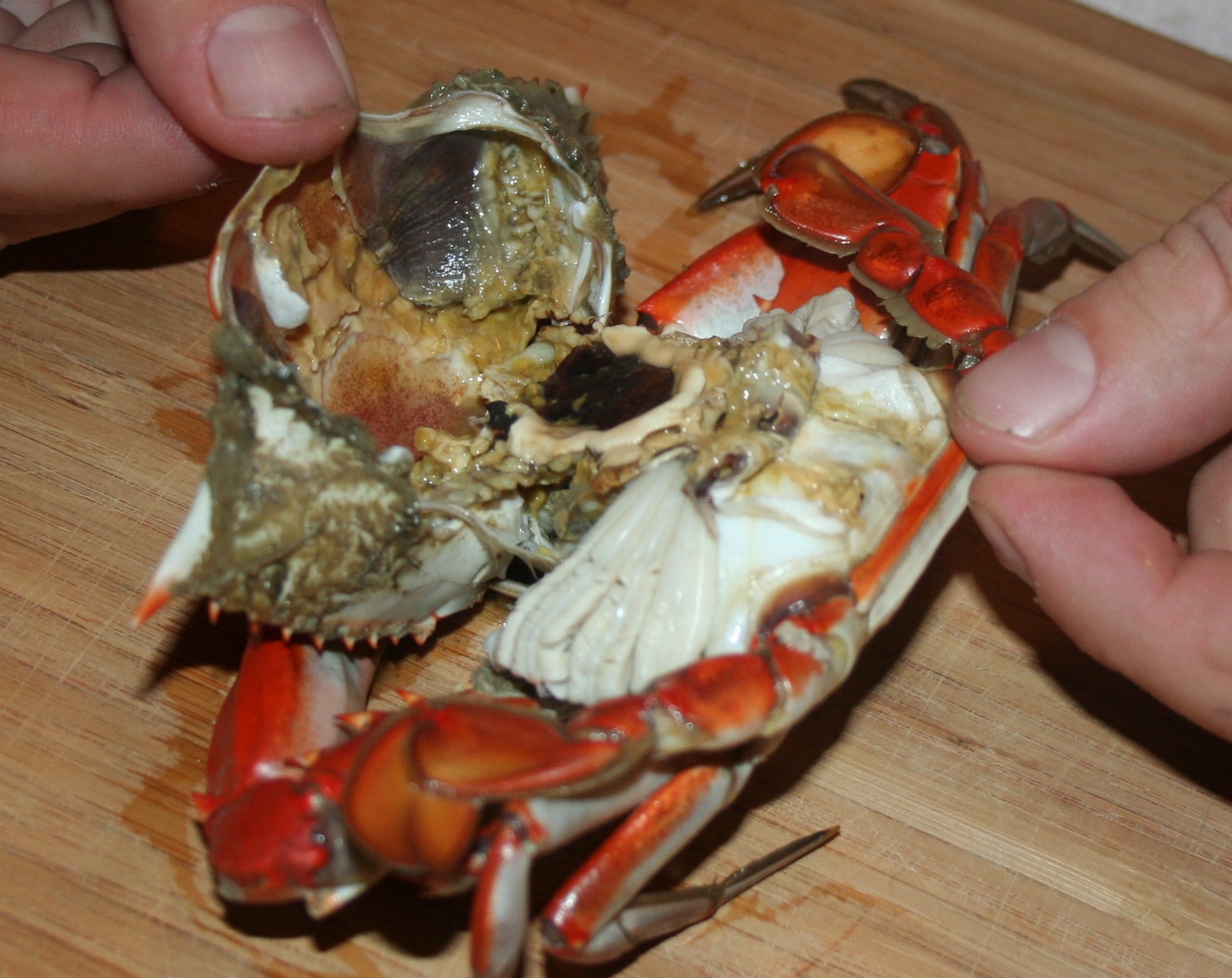 Dude, where I'm from, we peel the backs off of ocean spiders, scoop out their **** and innards, and then pick out the meat inside their carapace. I'm talking about blue crabs, but if you've never done it, I'm sure it's a culture shock. Purple filling ain't stopping me...lol.