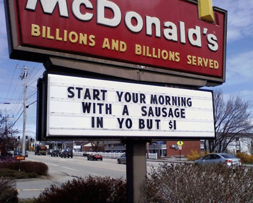I know, right? Also they have this in their regular menu: "WieśMac ("Country Mac"), a quarter-pound beef patty with onions, lettuce, cheese, mustard, and horseradish sauce on a sesame seed bun"