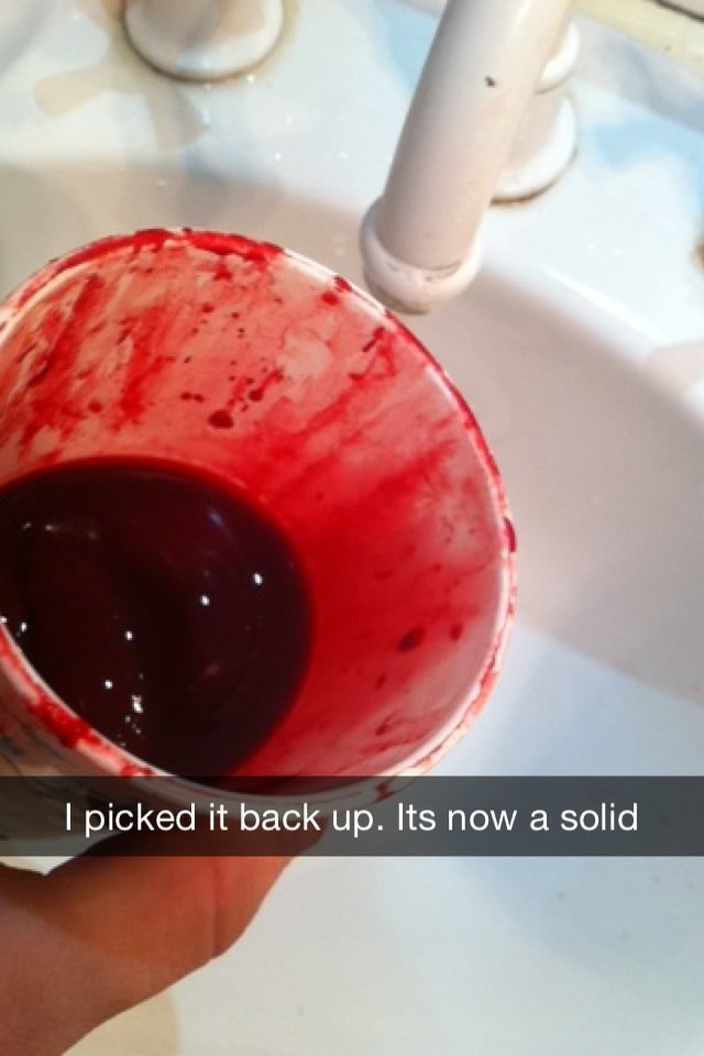 So i was picking my nose and it started bleeding so i grabbed the closest cup near me and thought i should fill it with the blood nose to see what would happen.