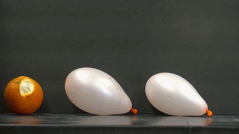 The essential oils of citrus fruit (especially orange and lemon oil) found in the rinds of the fruit contain certain hydrocarbons that are very effective in destroying the links between polymers in plastics, and a powerful solvent on oils and resins. This is why a lot of cleaning agents today contain citrus oils, and why the oil so easily pops these balloons. It's basically eating away a hole through the plastic.