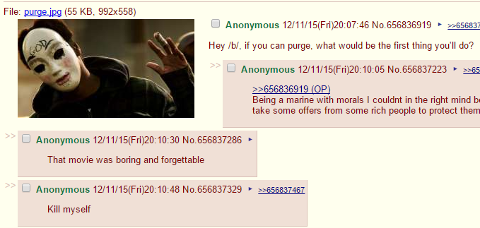 Hey/ h/.. ifyou can purge, what would heme first thing you' ll do?