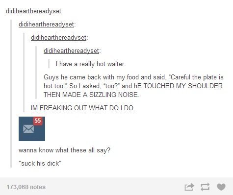 I have a really hot waiter.