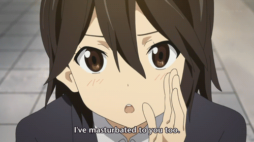 Kokoro Connect and Kokoro Connect Michi Random. Pictured is Himeko Inaba, the best girl, telling the mc, Taichi Yaegashi this little secret after he told her the same earlier in the episode. My .gif is also from the show