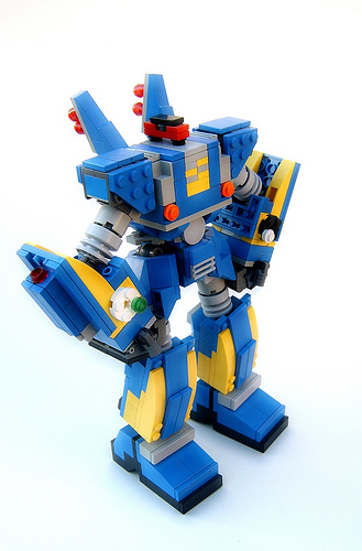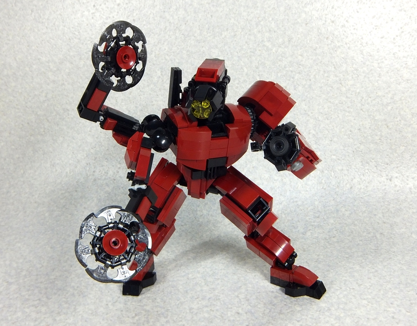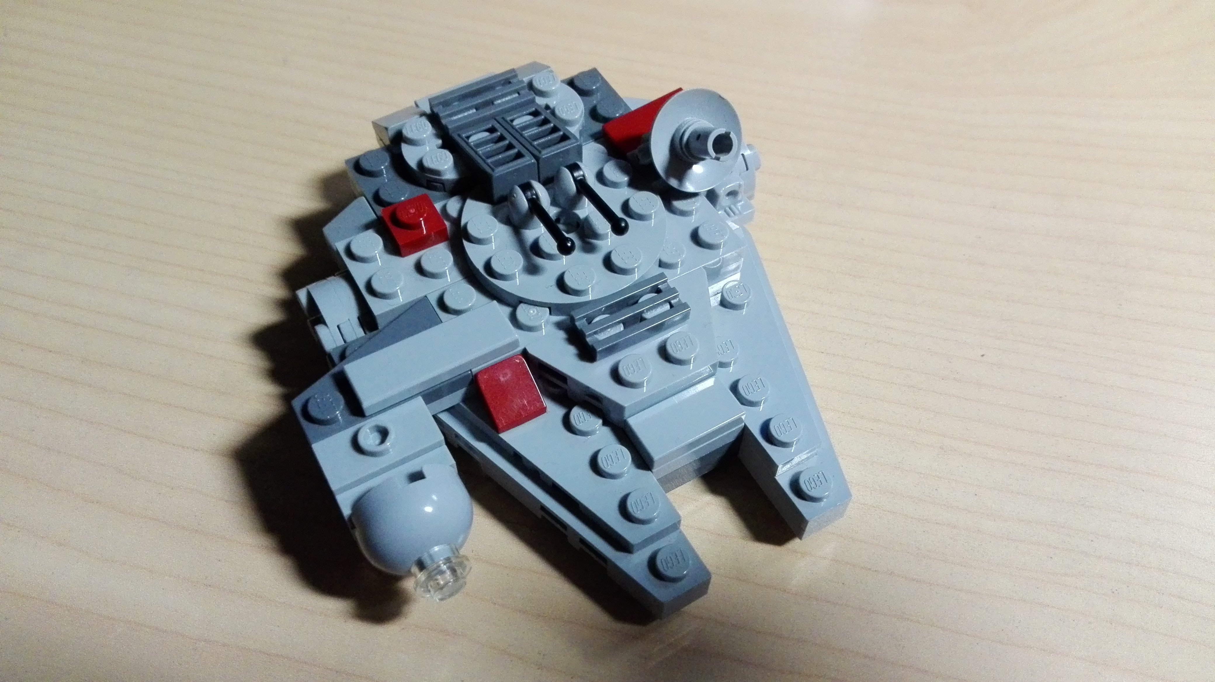Step-by-step is a little excessive for such a small model. From the picture it's quite obvious how it's done and which pieces are used, the only kind of weird pieces are the sloped dark-gray pieces making up the sides. The right side is shown from above because it's identical to the left side, except the cockpit that's replace with a 2x1 thingy (don't know what they're called)