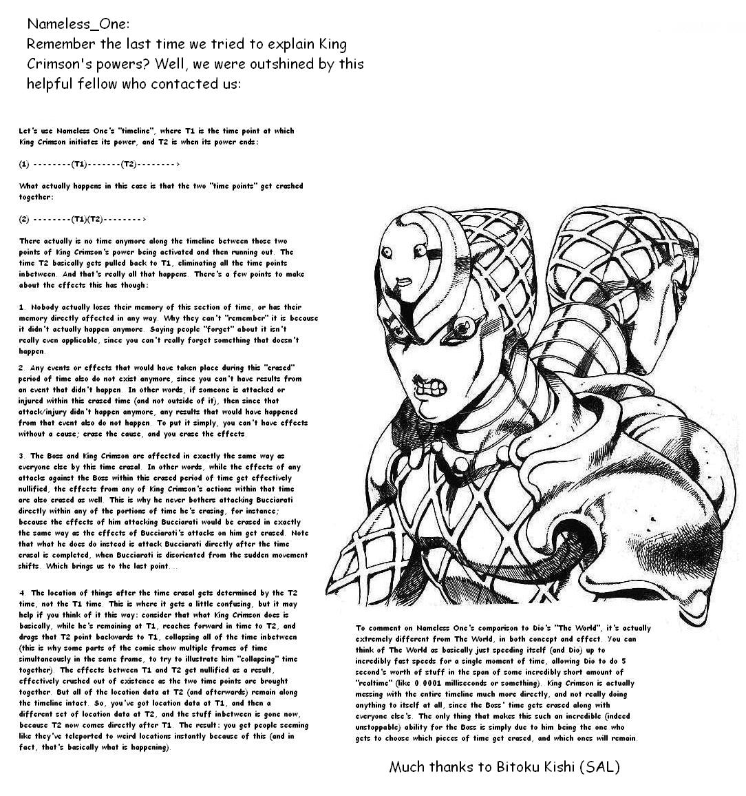 Well you see, keeping with the chronokinetic powers from the bosses, King Crimson can delete about 10 seconds of time on the time line. He only delete that time, but the doings still remain.