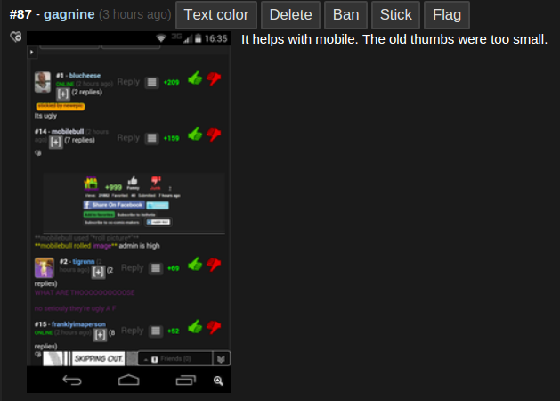 First I want to say I'm extremely disappointed in this site. Over the past 10 hours I've gotten many death threats, spam complaints on my form, and people threatening to "hack FJ" and "kill me" because I changed the thumbs.