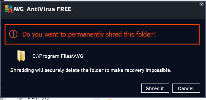 The antivirus has an option to completly erase a folder (because virus, you know). OP is trying to erase the folder where the antivirus is installed (notice AVG antivirus and the folder's filename)