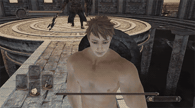 So you walk in, parry his big dumb sword, and haul ass to the left ballista, and fire it. If it's done right, it knocks off most of his health. It's probably how speedrunners do it, so you could look up a speedrun.