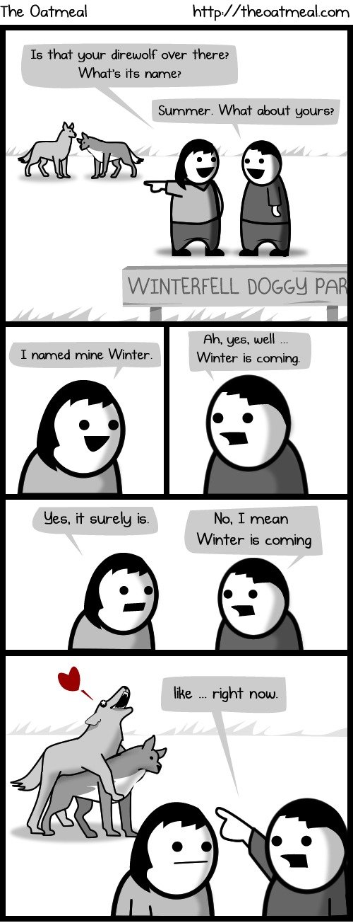 Winter still isn't here Flag ablock (See more...) next random - Fav Favorite Comment ✖ Top NextComment next Tags: GAMEofthrones | Got | yiff The Oatmeal /'/ Summer. What about yours? ... +191 Views: 10668 Favorited: 14 Submitted: 04/27/2015 Share On Facebook -Favorite +Favorite Unsub from ablock Subscribe to ablock