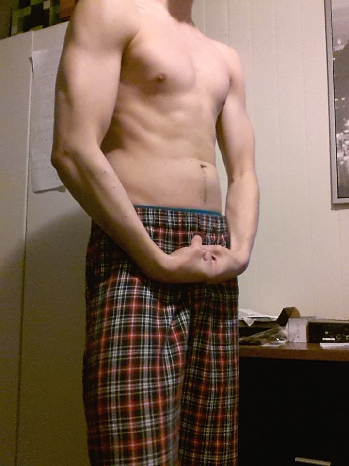 but now i look like this. its not anything crazy and i still have much road left to go. but it shows that even a skinny pale kid who plays way to much video games can workout and make great improvement. its a great improvement if you ask me atleast.