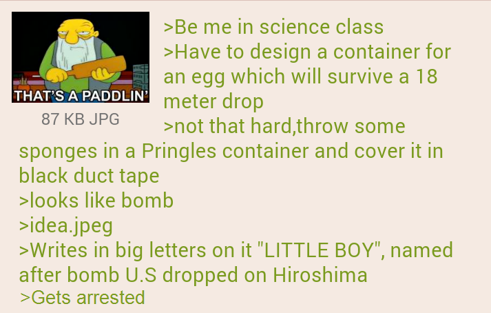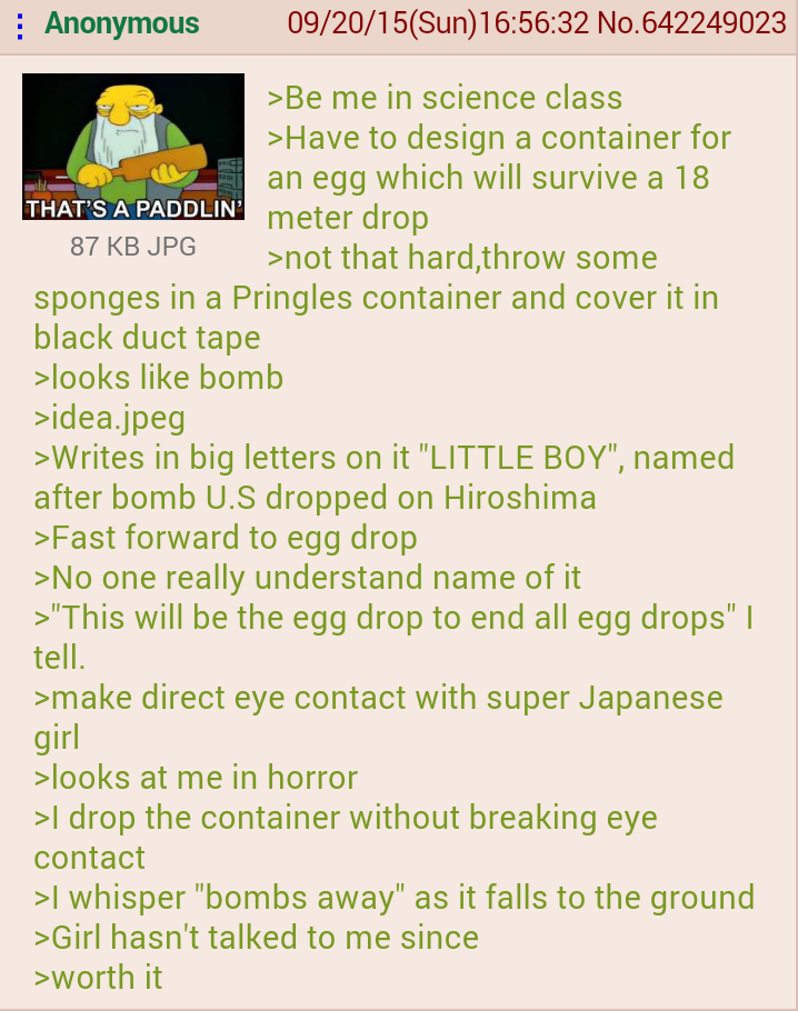 This will be the egg drop to end all egg drops" I
