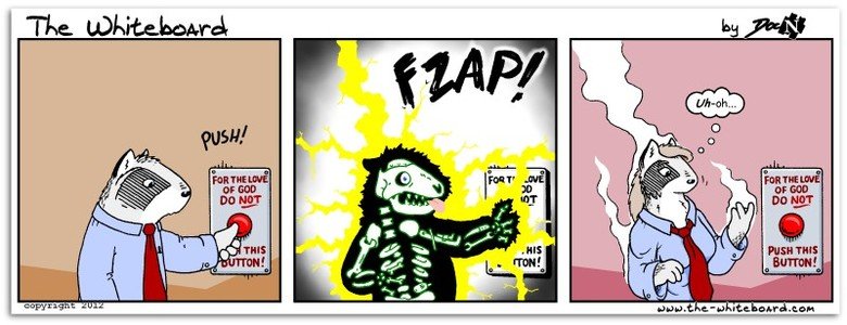 or turn into a hermaphrodite. i'd rather not push it at all, only an idiot pushes the big red button if they don't know how it works.