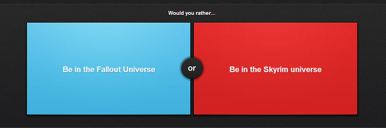 What the **** kind of a question is that? do i want to be irradiated, ****** by bandits and eat 200 year old food or be a wizard that can shout fire and **** and eat argonians, what the **** do you think im going to choose?