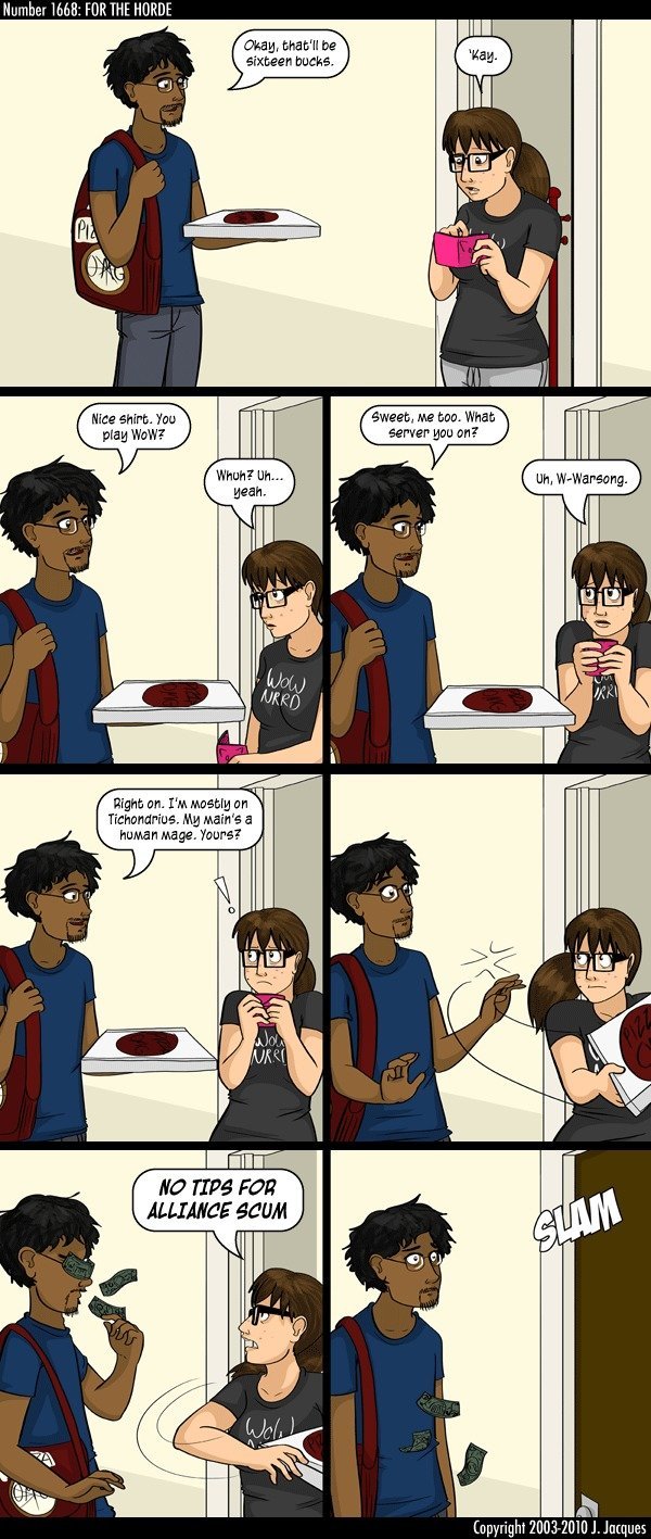 Spent my whole WoW career on PvP servers, always on the Alliance side.