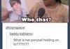 What is her ponytail holding on