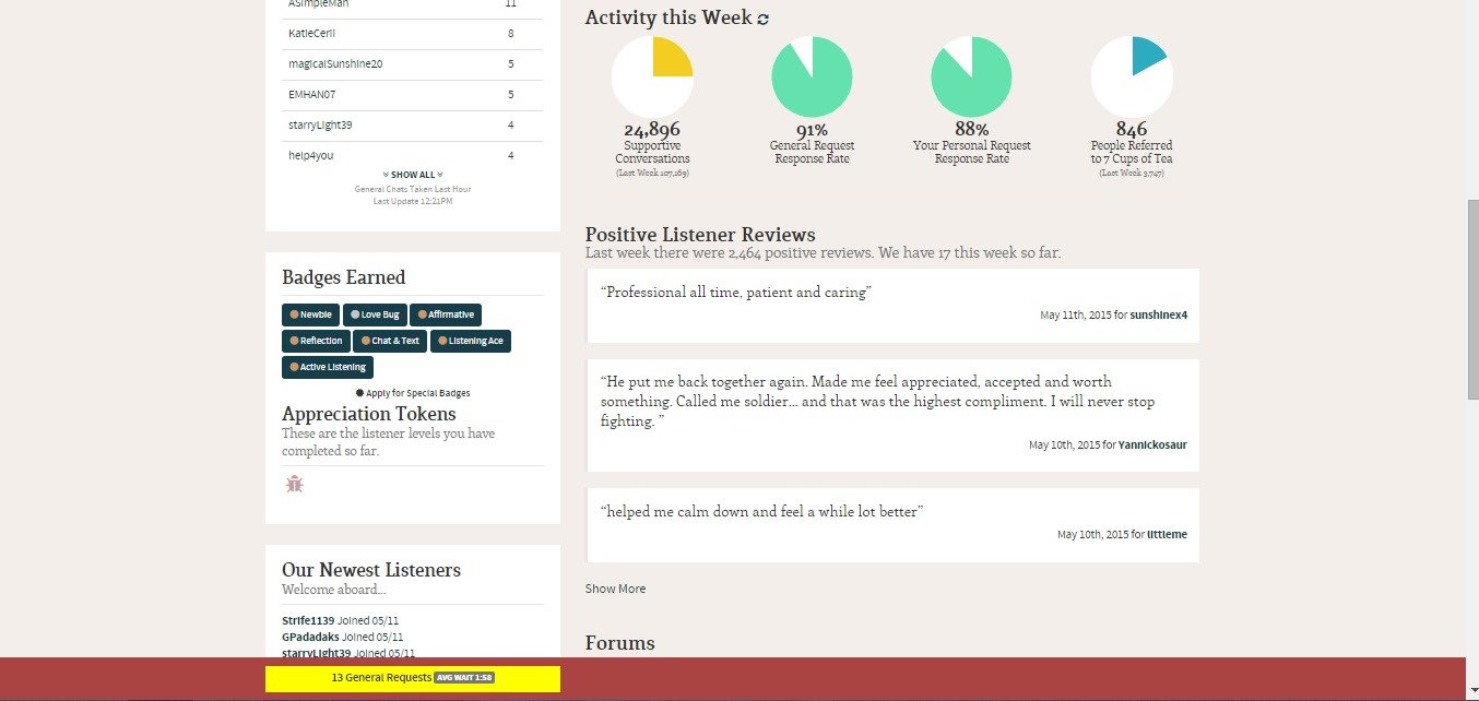You can become a listener if you feel like helping those in need. All that is required is a small test that teaches you how to properly ''listen'' to people. What to do, what to not do in this or that case. It's not a long test, but I learned a few things.