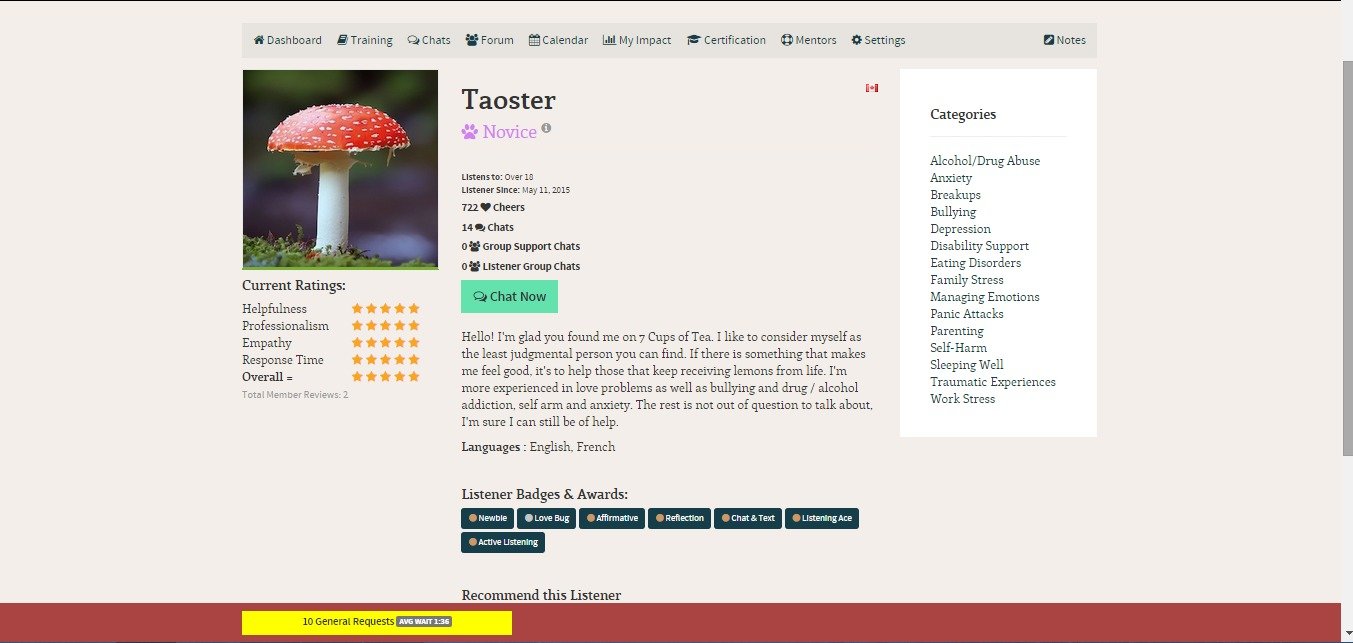 7 Cups of Tea is a chatting website dedicated to help those in need of a listener. There are a lot of options you can choose depending on your problem, from depression to drug abuse or traumatic experiences, and you can even search for the right listener for you and follow them in case you have another down.