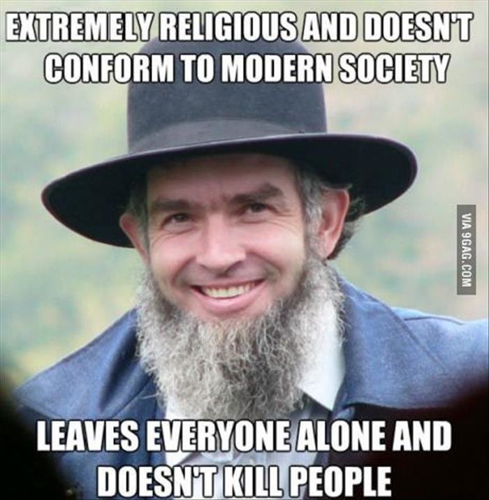 Except they have a tradition called (and I'll probably **** this up) "rumspringa" or something close to that. They allow all the young kids (~15 yo, I think) to go to the "English" world to experience all the stuff that we can. If they don't want to come home, they don't have to