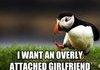 No you don't. You want a girl who follows you around and does things with you. An overly attached girlfriend is a ******* nightmare. You cant play games, you cant decide to go somewhere, you can't talk to anyone of the opposite gender because they get jealous and tell you that if you loved them you wouldn't talk to anyone else. THEY'RE A ******* NIGHTMARE.