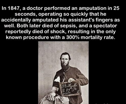 He was one of the fastest surgeons around, and as wikipedia put it, speed was essential when the patient risks infection and going into shock from pain. Quicker it's over with, the better chance of survival he has. No antiseptics, no anaesthesia.