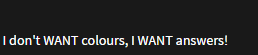 on second thoughts this may be easier using my main. I don't WANT colours, I WANT answers!