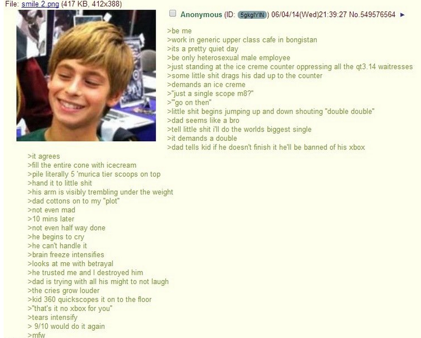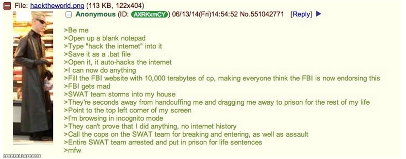 4chan does a lot of stupid **** . I think, personally, nothing comes across as more stupid than typing "qt3.14"