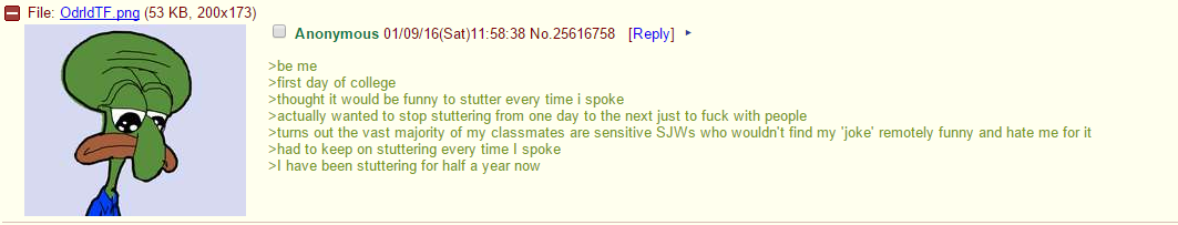 aactually wanted to stop stuttering from one day to the next just to **** with people