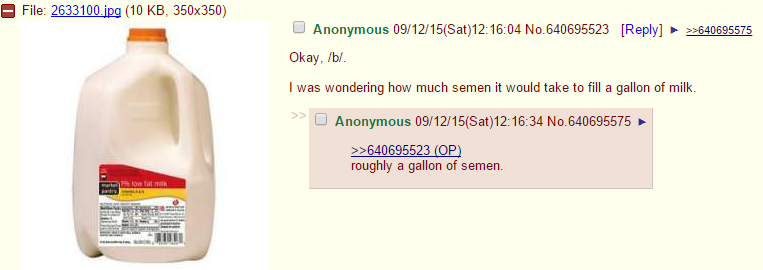 I was wondering haw much semen it would take to fill a gallon of milk.