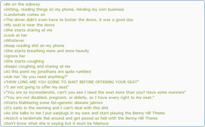 Waatch a landwhale flail around and get pissed as hell with the Benny Hill Theme
