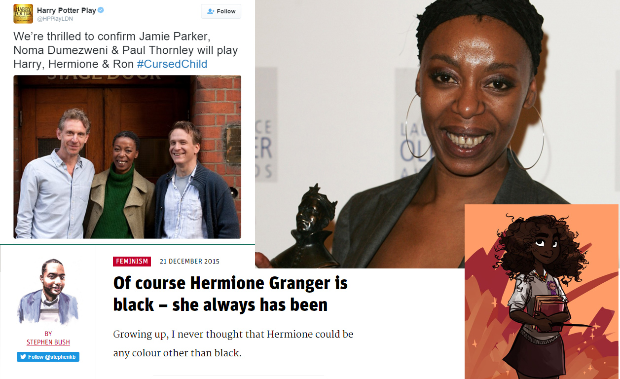 I am not sure, but I think there were a stage play were the actress playing Hermione was black and of course Tumblr got all over that **** like a triple cheese burger with extra bacon.