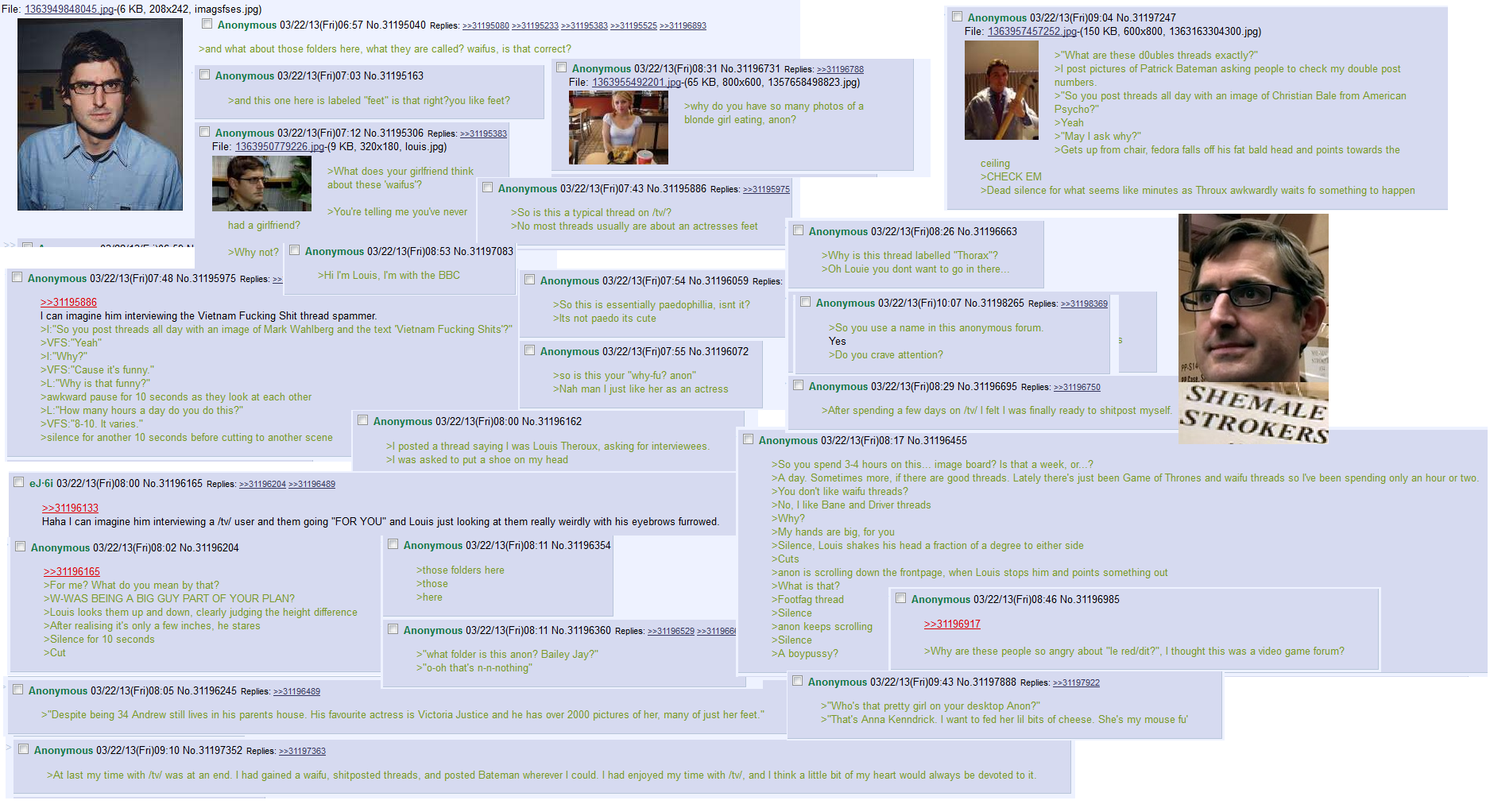 scilence for another IO seconds before cutting to another scene oi posted a thread saying I was Louis Theroux. asking for interviewees. CI Anonymous (/ )