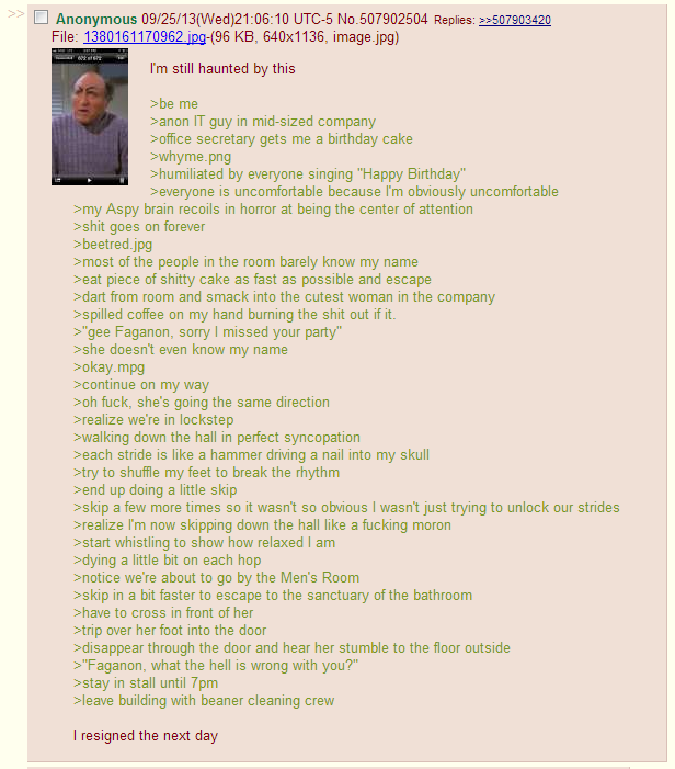 mmy Aspy brain recoils in horror at being the center of attention