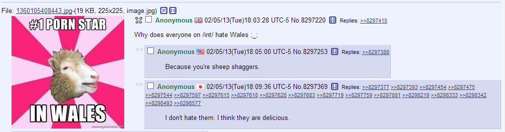 people quickly picked up on this, so when the welsh were caught stealing a sheep, they simply claimed to be trying to **** it instead.
