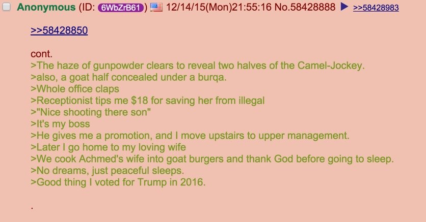 Hey man I'm already voting for Trump. Not because I think "he's gunna keep these turrurists out of 'merica!" But because I think he's smarter than anyone gives him credit for and can effectively manage the social politics of today. That and he won't try to remove the first Amendment like Cuck Sanders inevitably will.