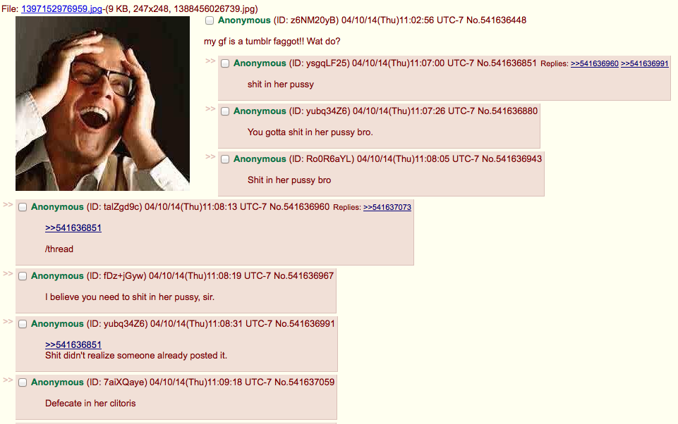 How can you defecate in a girls clitoris? Either the 4chinner in question doesn't know much about bedroom stuff, or I worry he might be planning to do something nasty with a scalpel. Not a pretty picture...