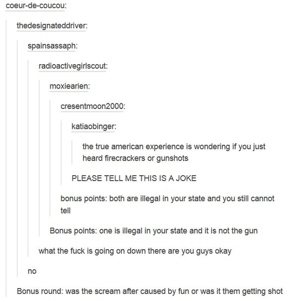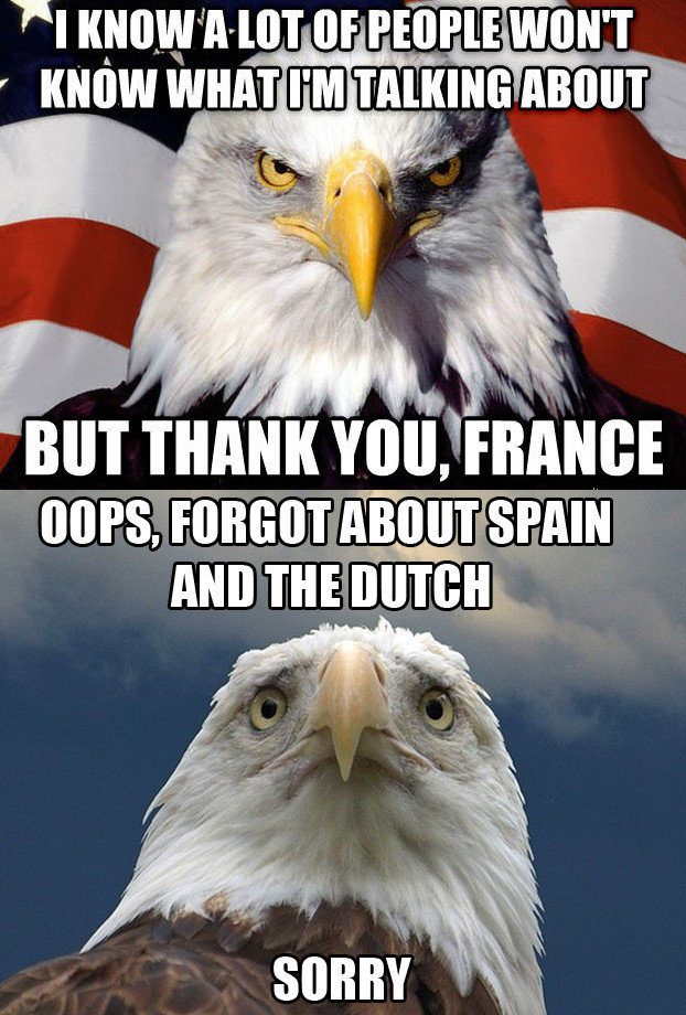 to day is the 4th of july the day of Americas independence (inb4 euros: "we know already!") but right now there's some serious bull **** going on in the world let alone the US. people mad because gays can wed people mad about a flag all kinds of stuff. but and the post on the front page has made this point well (/This+will+probably+offend+everybody/funny-pictures/5602571/) america is about freedom to do whatever you want be what ever you want think what ever and every time some one makes up new rules because they don't like how some one else thinks it only make it worse of every one including those they're trying to help.